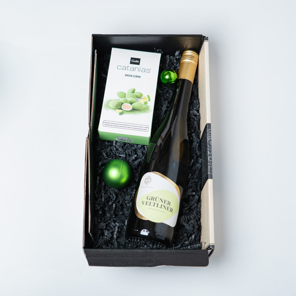 Ein edles Präsent für bewusste Genießer: alkoholfreier Grüner Veltliner trifft auf fruchtig-zitronige Catanias Pralinen. Eine festliche Kombination voller Leichtigkeit und Geschmack – ganz ohne Alkohol.